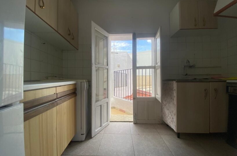 Venta céntrico piso de una superficie construida de 108 m2 según catastro, situado en la planta primera de un edificio formado por dos viviendas, cada una con acceso independiente desde la calle. El inmueble se distribuye en salón climatizado, cocina con acceso a terraza lavadero, baño completo y cuatro dormitorios dobles (uno climatizado y otro interior). El piso cuenta con un trastero sin acondicionar de unos 15 m2 en la misma planta que la vivienda y un garaje privado de la misma superficie (4,50m x 3 m). Vivienda con cierta antigüedad, pero bien cuidada y mantenida, se entrega recién pintada.